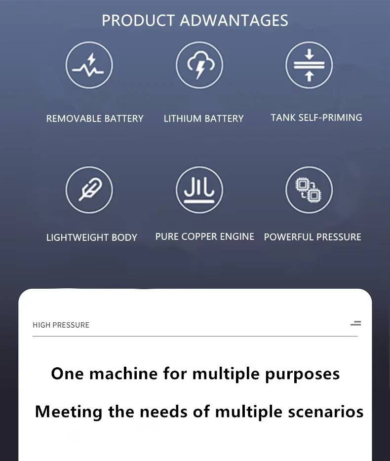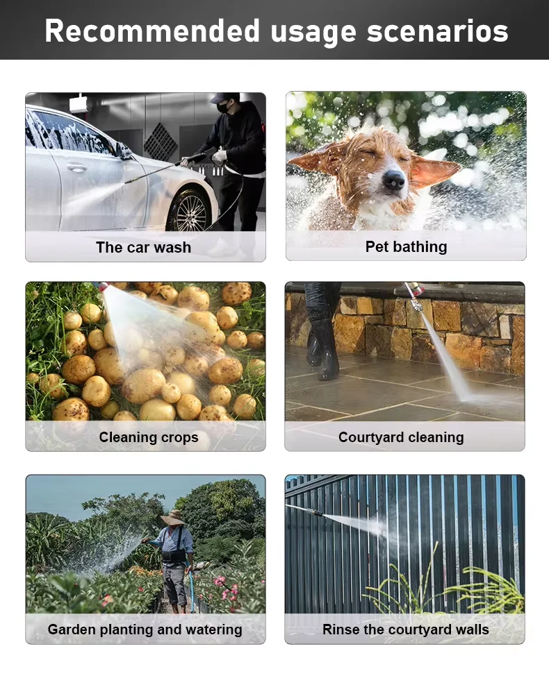 7.Limpeza multifuncional de alta pressão, muito adequada para lavagem de carros, rega de jardins, irrigação agrícola e limpeza diária