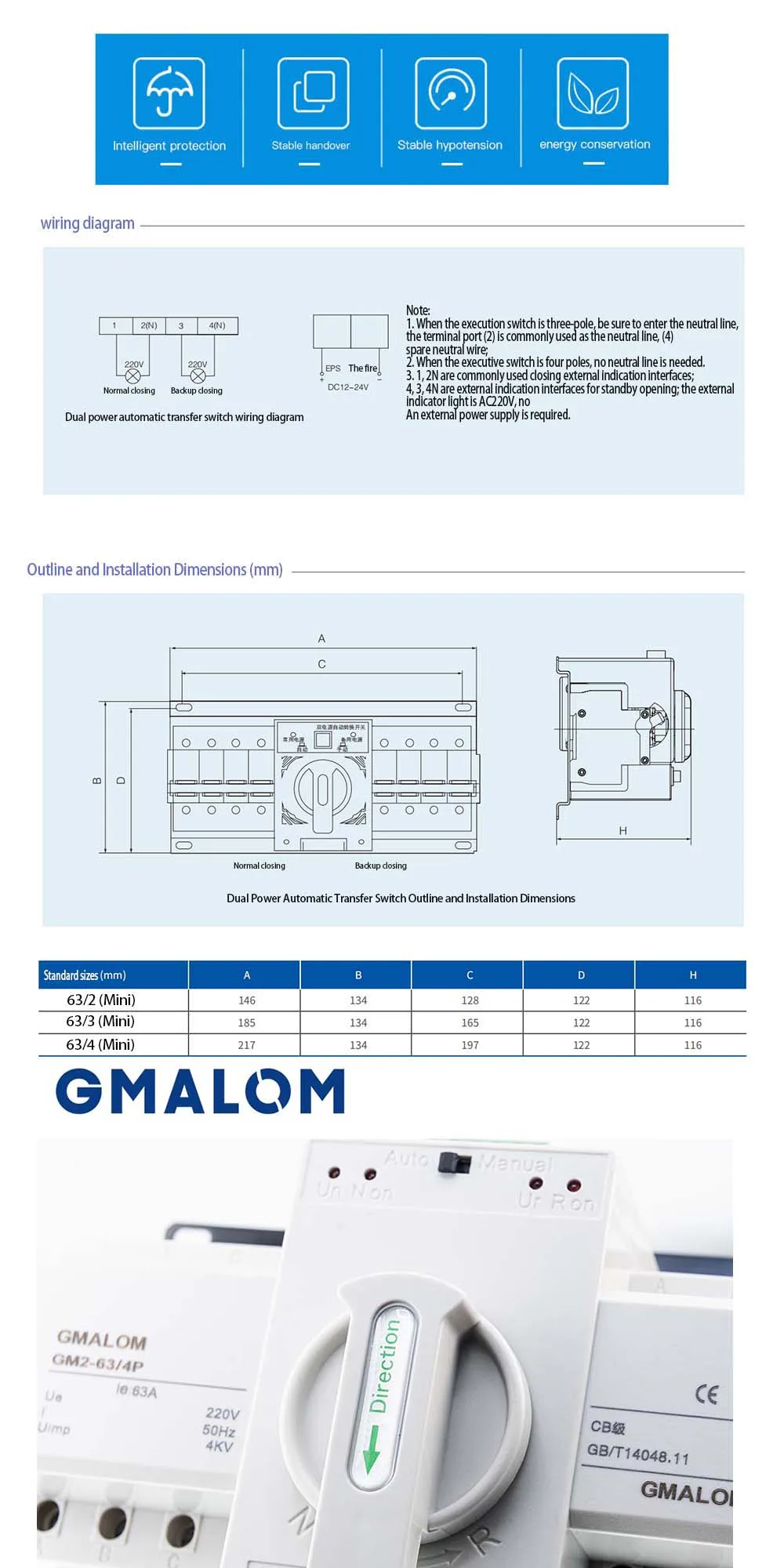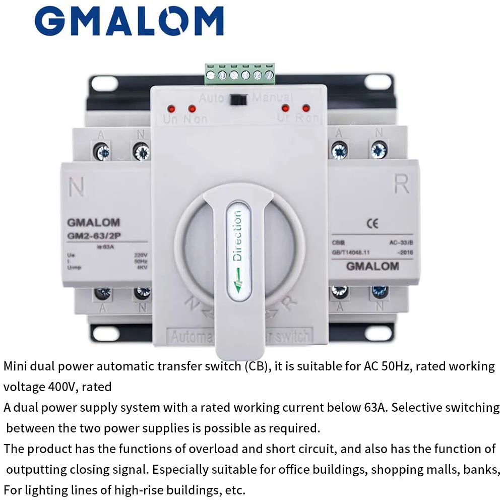 Chave de transferência automática de energia dupla ats (cb) 2p/4p 63a ac230v 50/60hz mcb disjuntores de comutação automática/manual