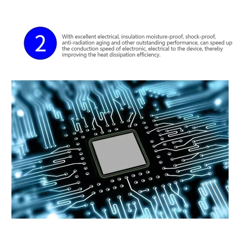 Possui excelente desempenho elétrico, isolamento, resistência à umidade, resistência a choques, resistência ao envelhecimento por radiação, entre outros; acelera a condução térmica de componentes eletrônicos para os dispositivos, melhorando a eficiência de dissipação de calor.