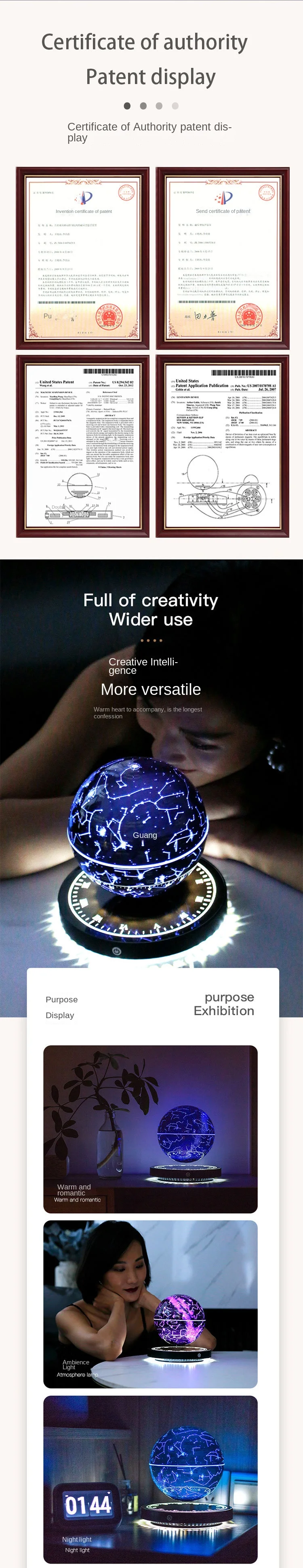 Globo Terrestre Flutuante com LED, Rotativo, Luz de Mesa com Signos do Zodíaco, Presente Criativo de Natal