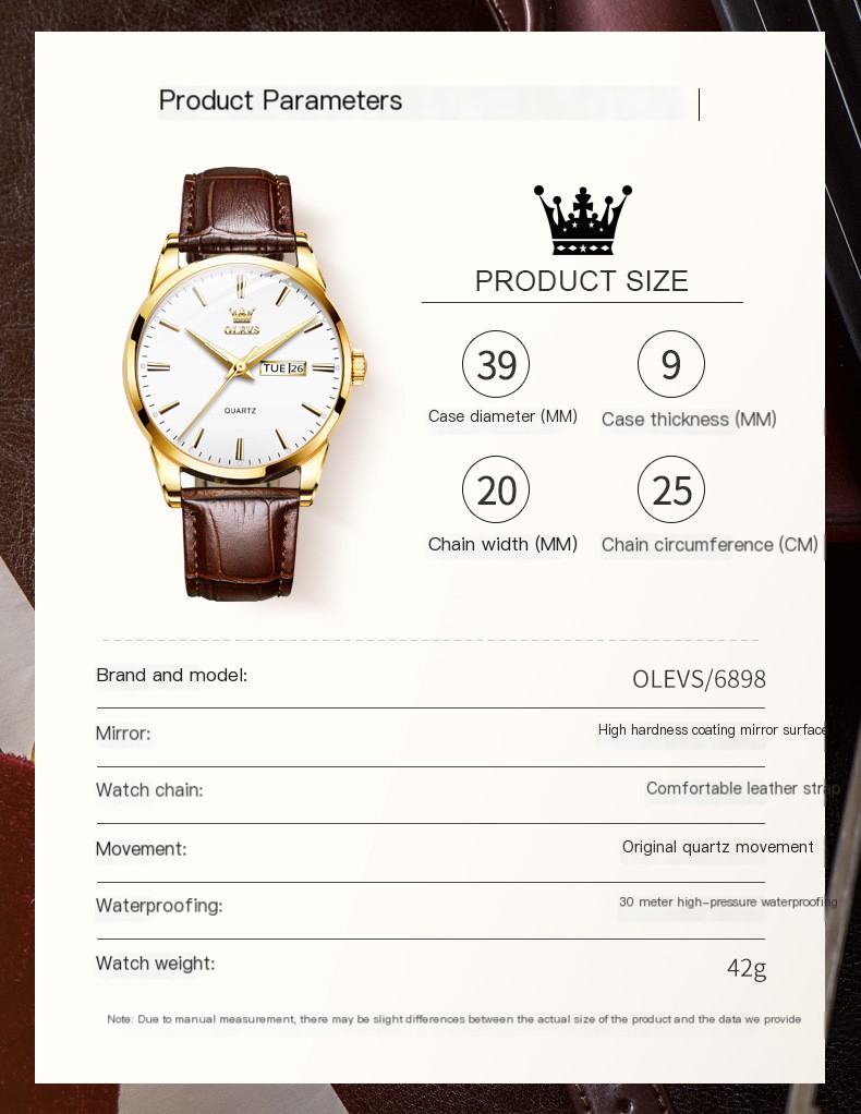 Diâmetro do mostrador: 39 mm